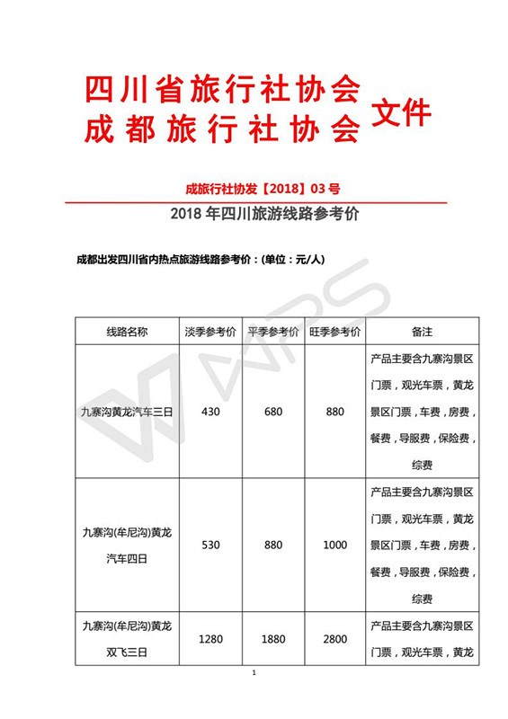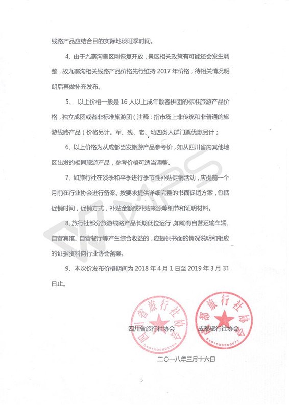此外,43条线路的价格为从成都出发旅游产品参考价,如从四川省内其他地区出发的相同旅游产品,参考价格可适当调整。价格期间为2018年4月1日至2019年3月31日。