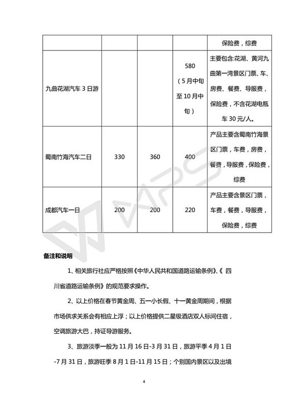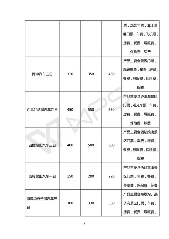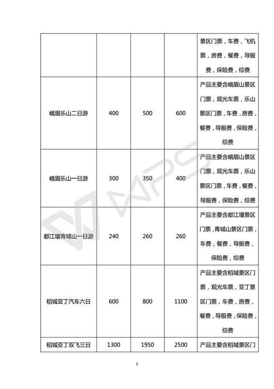 成都跟团旅游参考价格(四川旅行社协会发布)